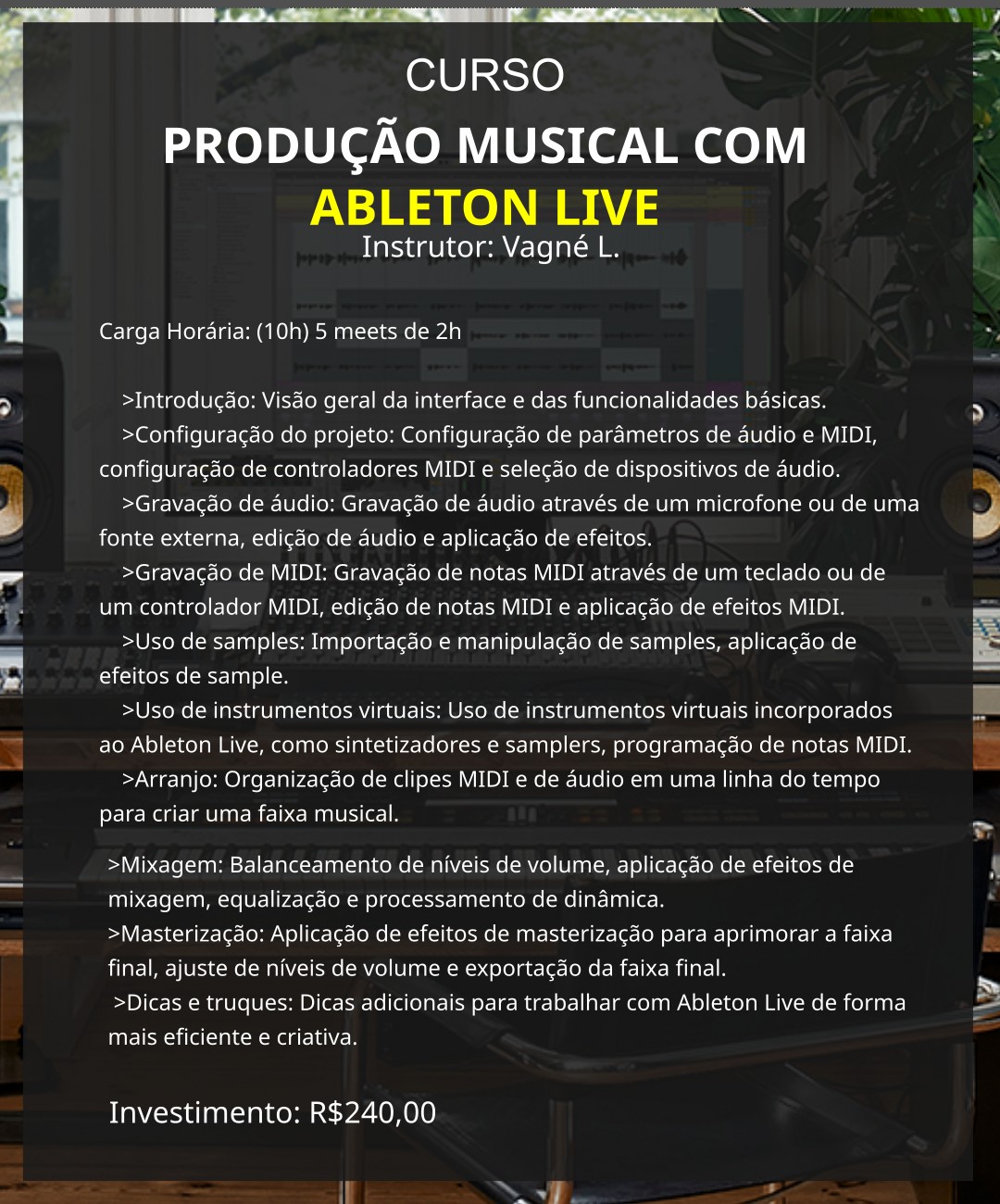 - Introdução ao Ableton Live: Visão geral da interface do usuário e das funcionalidades básicas do software.